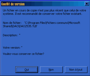 Le setup installe le logiciel et quelques dll (toujours utile sous windows). Le setup ne copie pas les photos du CD. En cas de message ci-contre (fichier plus récent sur votre micro) répondre à la question pour conserver le plus récent.