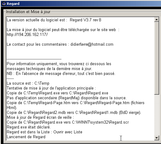 Il est possible de réaliser les mises à jour directement à partir du serveur Web. Il faut être connecté sur l’internet puis lancer Regard. Le site est accessible à partir du Menu de Regard par click droit sur la souris.